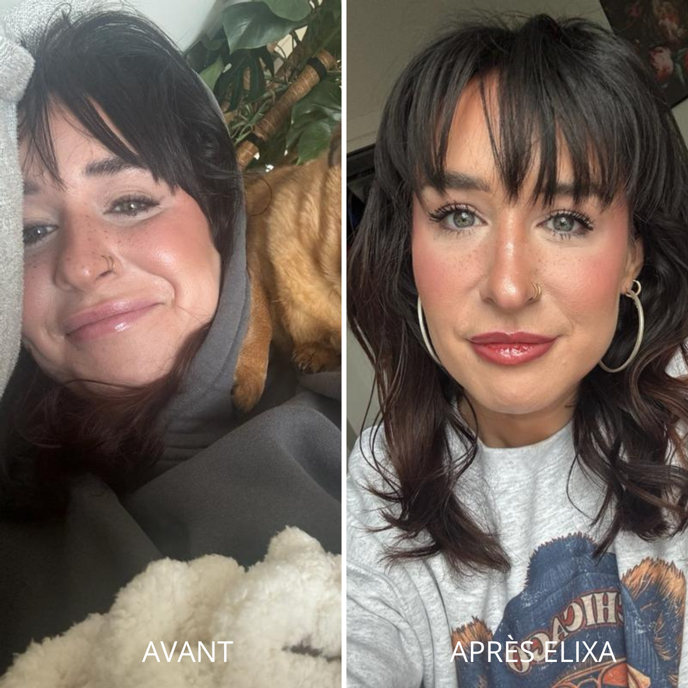 "J'ai toujours été complexée par ma lèvre supérieure qui 'disparaît' quand je souris, mais l'idée d'une aiguille me terrifie. J'avais peur de me retrouver avec des lèvres de canard. J'ai testé Elixa sans trop y croire... Le résultat est bluffant : mes lèvres sont redessinées, plus pleines, mais ça reste MOI. C’est mon secret pour avoir un visage plus harmonieux sans passer par la case chirurgie."